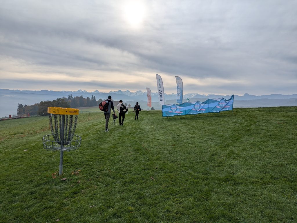 Von Freitag 17. bis Sonntag 19. Oktober wurde auf dem Gurten der Swisstour-Final ausgetragen. Die Mitglieder des Disc Golf Club walkabout waren schon am Donnerstagmorgen auf dem Gurten angekommen und stellten zusammen tatkräftig das Zelt, alle Tees, Banner, Flags, Hinweistafeln und Körbe für den grossen Abschluss der Discgolfsaison 2025 auf. Um 15 Uhr kamen bereits die ersten Spieler*innen zum Training an, bis Freitagmittag alle zum Players-Meeting um 12.30 Uhr zusammentrafen. Um 13.30 Uhr startete dann die erste Runde im Shotgun-Modus bei besten Discgolfbedingungen: Hochnebel, kühl und nur wenig Spazierende. Runde 2 am Samstag und Runde 3 am Sonntag wurden im Golfstart durchgeführt. Das Wetter hielt sich kühl, bis zuletzt noch die Sonne durchdrang. Das Feld war leider bis zum Schluss nicht voll, es starteten 6 Spielerinnen und 50 Spieler.